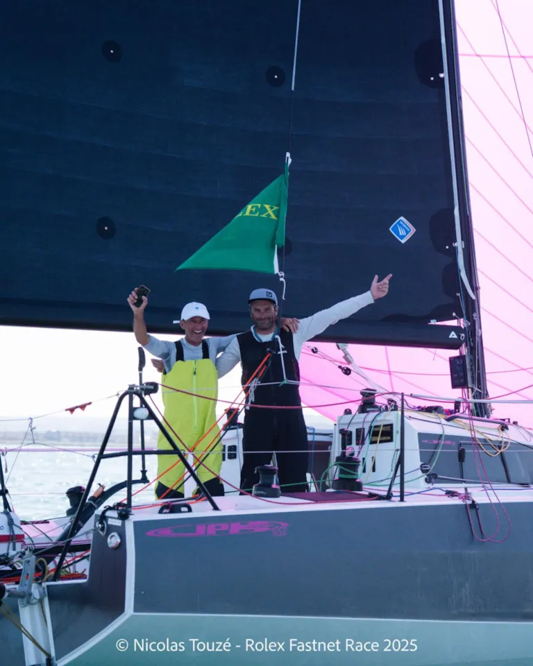 Cocorico ! Le voilier JPK 1050 Léon, skippé par Alexis Loison et Jean-Pierre Kelbert, remporte la victoire en temps compensé et décroche la prestigieuse Fastnet Challenge Cup. ⚓️
